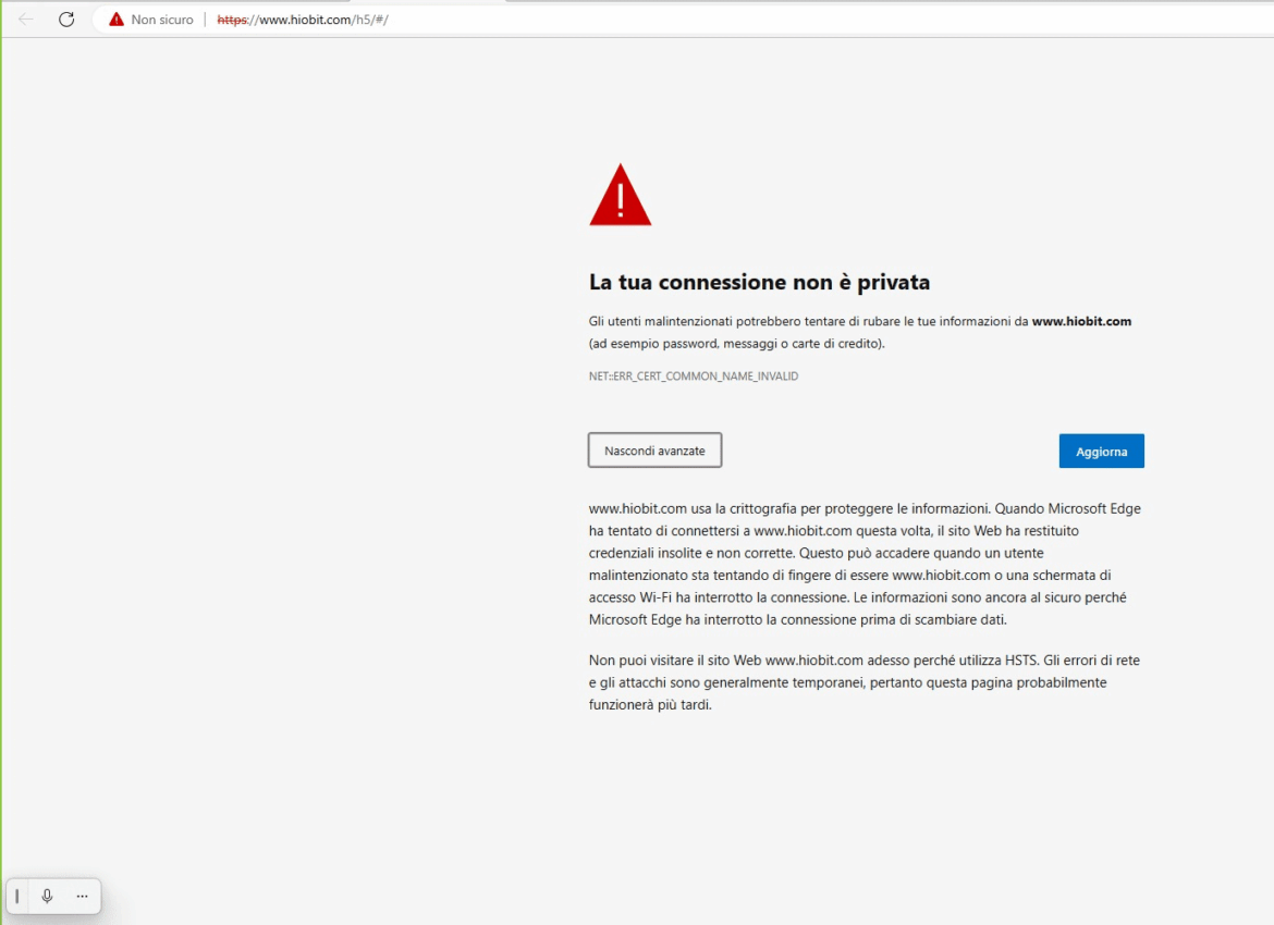 Pasquale, nome di fantasia, ha chiesto informazioni sulla piattaforma e la risposta è stata quasi immediata: sconosciuta e non accreditata a livello globale. Il vero problema però doveva ancora sorgere perché l’utente ci ha raccontato di aver investito una cifra pari a 25.000 euro circa. Dopo una settimana siamo ritornati sulla piattaforma e Microsoft Edge la riconosce pericolosa e ne impedisce l’accesso. Con il senno di poi è stato facile.