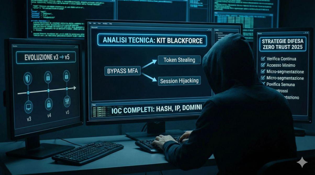 Nel panorama delle minacce informatiche del 2025 emerge BlackForce, un kit di phishing avanzato che ha ridefinito gli standard degli attacchi Man-in-the-Browser. Identificato da Zscaler ThreatLabz nell’agosto 2025, questo strumento malevolo, venduto su Telegram per poche centinaia di euro, prende di mira colossi come Disney, Netflix e operatori logistici quali DHL e UPS. La sua pericolosità risiede nella capacità di bypassare l’autenticazione a più fattori (MFA) tramite l’iniezione di pagine false in tempo reale e una gestione sofisticata dello stato della sessione. Con un’architettura che evolve rapidamente dalla versione 3 alla 5, passando da strutture stateless a sistemi persistenti e offuscati, BlackForce rappresenta una sfida critica per la sicurezza aziendale, richiedendo l’adozione immediata di strategie Zero Trust per mitigare il rischio di account takeover su scala globale.